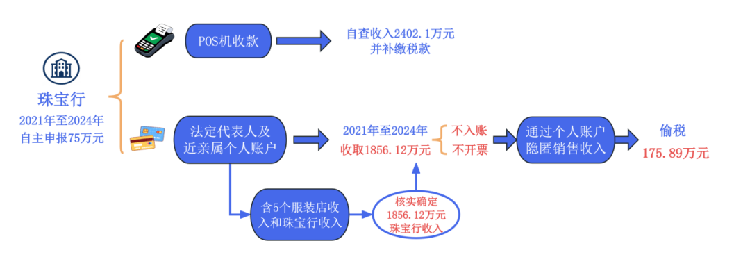 至此,鑫福珠宝利用个人账户收款、隐匿真实销售收入、不据实申报的违法操作,彻底浮出水面。