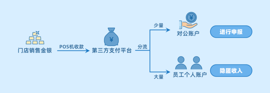 检查人员对这一对公账户的流水进行核对,并与门店留存的销售台账、库存进出记录逐一比对,结果发现账户收入、销售数据、库存变动三者完全无法对应。检查人员依法调取店铺负责人及员工的个人银行账户开展核查时,发现多个私人账户存在高频次、大额度的资金流入,资金入账时间与门店日常营业时段吻合,单笔金额从数千元到几十万元不等,符合黄金珠宝零售的交易特点。进一步核查显示,这些资金均通过大众普遍使用的第三方平台支付,与门店POS机刷卡记录、线上线下收款账单信息一一吻合,形成了完整的资金证据链。
