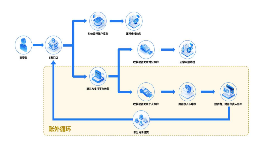 在无法辩驳的证据链前,王兵承认利用第三方支付平台对销售资金进行“公私分流”,将大额收入转入公司员工账户隐匿销售收入,同时还通过将门店销售收入导入总公司及个人账户,从而在分公司层面进行“低申报”,以达到少缴税款的目的。