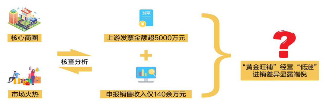 潮尊公司是沈阳本地一家黄金饰品销售企业,业务主要面向辽宁省内,但税务人员通过税收大数据分析发现,该公司长期、定向、大额向西藏云平台珠宝首饰有限公司等4户企业开具销售黄金饰品的增值税专用发票,涉及金额1.63亿元,占其对外开票总额的近50%。