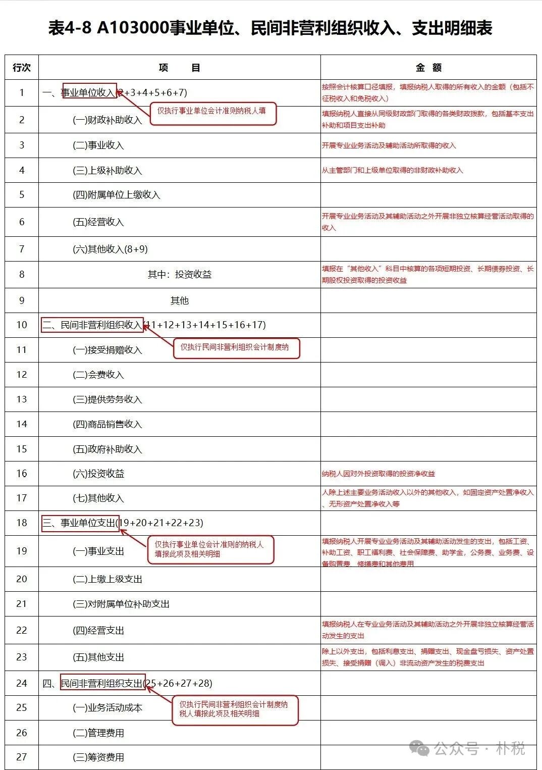 表4-8 A103000事业单位、民间非营利组织收入、支出明细表