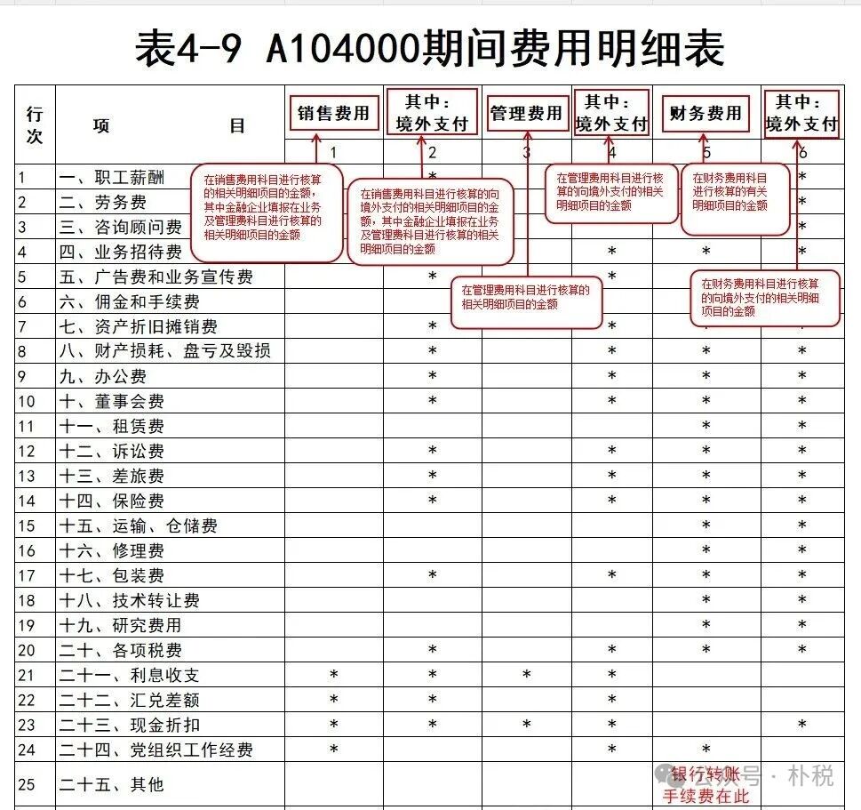 表4-9 A104000期间费用明细表
