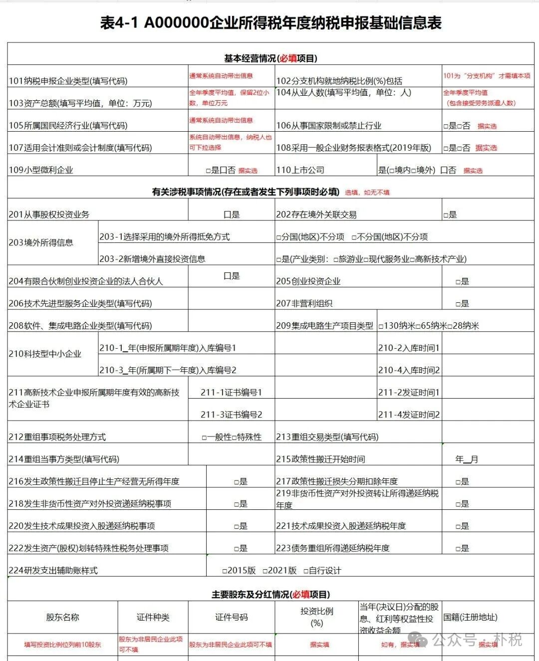 表4-1 A000000企业所得税年度纳税申报基础信息表