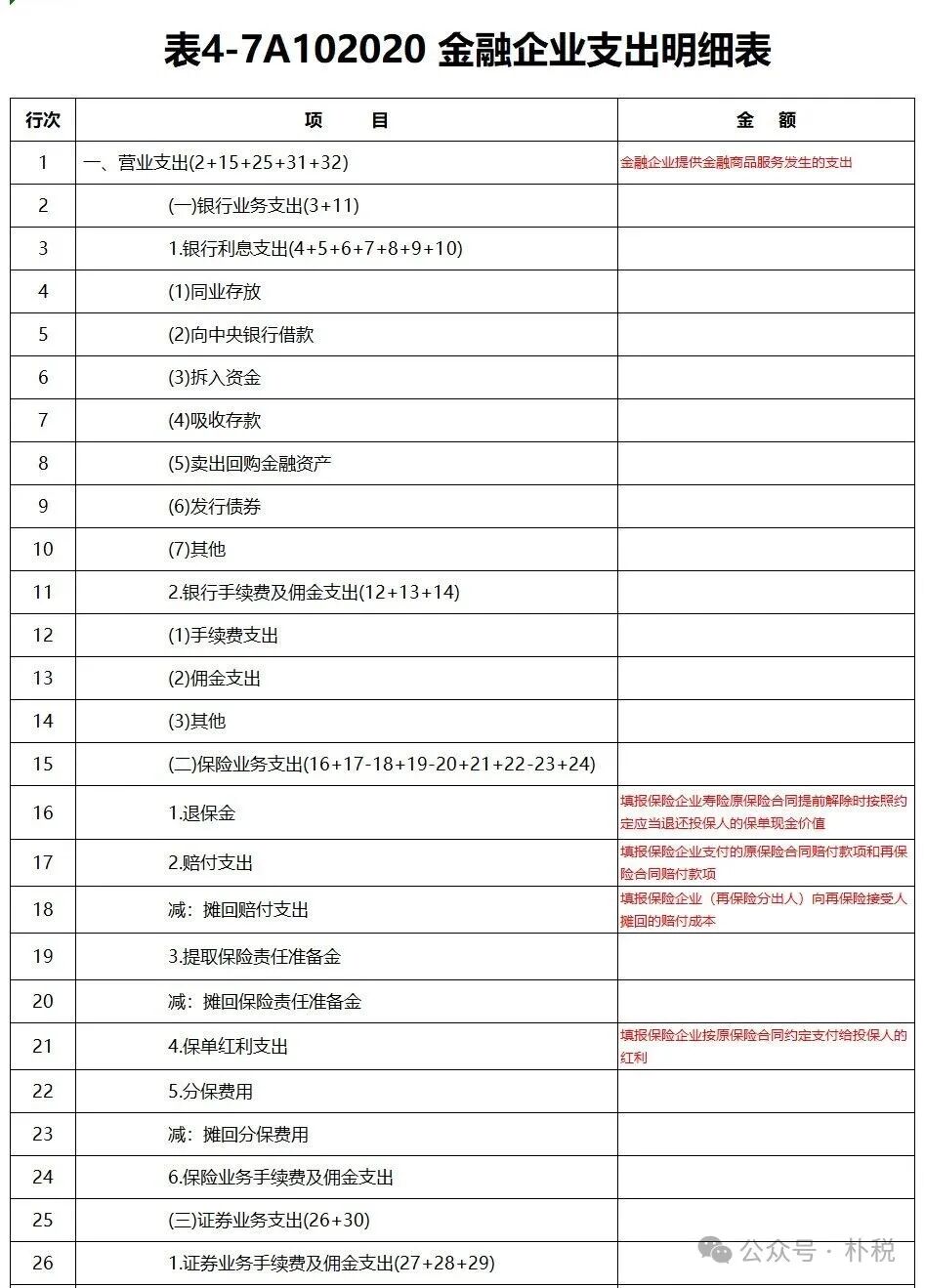 表4-7A102020 金融企业支出明细表