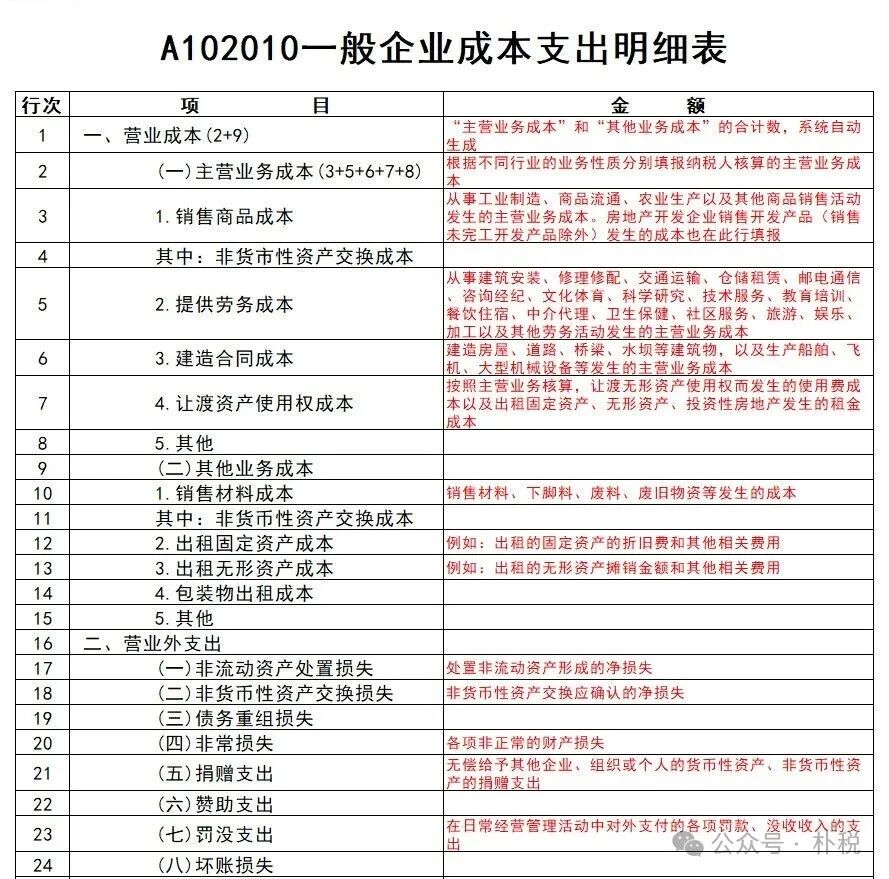 A102010一般企业成本支出明细表