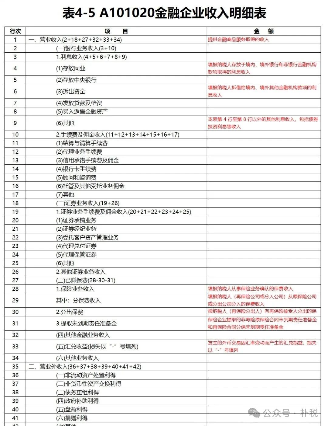 表4-5 A101020金融企业收入明细表