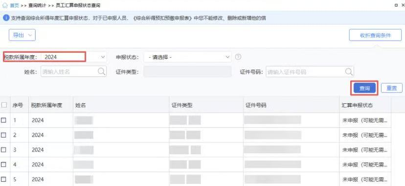 企业可实时查看员工年度汇算进度,及时提醒未申报人员完成汇算,降低税务风险。