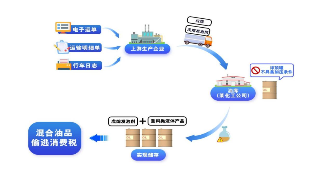 前期,国家税务总局茂名市税务局稽查局依托大数据比对分析发现,宏坚石化2023年存在购进戊烷、戊烷发泡剂等敏感油品的发票,却无对应销售开票记录,可能存在隐匿混合油品并偷逃消费税的嫌疑。