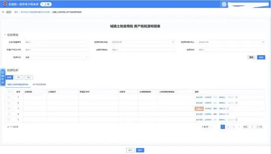 点击【税源采集】进入【城镇土地使用税 房产税税源明细表】模块。点击【基本信息】即可查看相应税源信息。