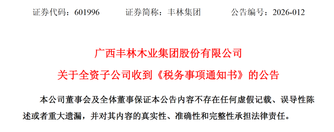 (以下简称“百色丰林”)收到主管税务机关国家税务总局百色市右江区税务局(以下简称“税务机关”)出具的《