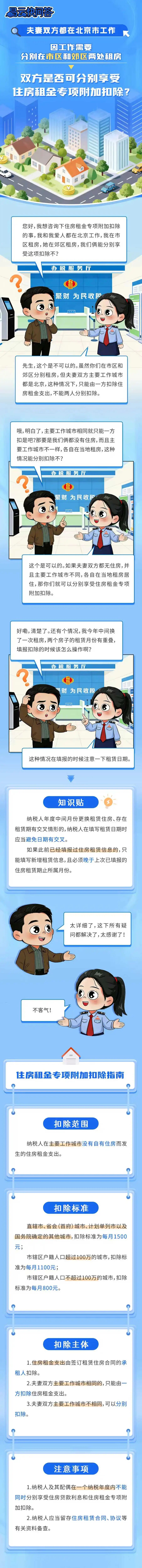 夫妻双方都在北京市工作,因工作需要分别在市区和郊区两处租房,双方是否可分别享受住房租金专项附加扣除?